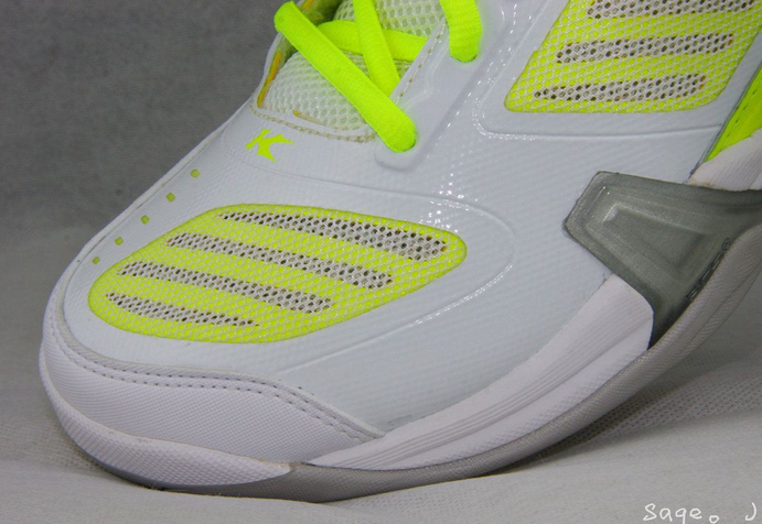 鞋舌的設計可以說是凱勝這幾年一只沒變的風格,較厚實的鞋舌,大孔的網布增加了球鞋的透氣性.