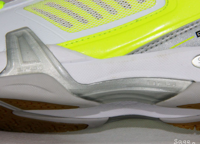 去掉鞋墊能從內測中底處能看到球鞋良好的透光性。后掌SAS緩震膠面積用料足夠。
