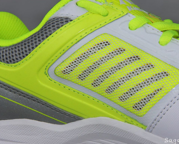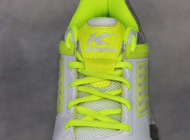 凱勝FYZH005-1羽毛球鞋鞋面的熱熔鍛技術,使得鞋面更加輕薄,內層的薄海綿在不增加鞋面的厚度上增加了鞋子的舒適度,更加貼合腳面。透氣窗大量的使用保證了透氣性。球鞋從設計和材質上來看就是主打透氣輕便。這點上還是很出色的。新款的中青隊的戰靴相對于之前的絲甲來說,這回是返璞歸真。沒有夸張的造型設計,常規鞋型上的小設計一樣能有不一樣的效果。新科技的使用讓鞋面的強度增加使得能有更多的透氣面積,同時也減輕了自身重量。但同時穩定系還依舊。穿著球鞋時馬上能體會到到輕質和爽快的感覺。熒光綠在腳下穿梭跳躍,回憶起與羽毛球有關的青春歲月。