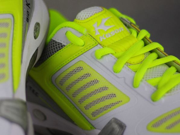 凱勝FYZH005-1球鞋以白色為主色調,搭配銀光綠再加稍許銀色搭配。