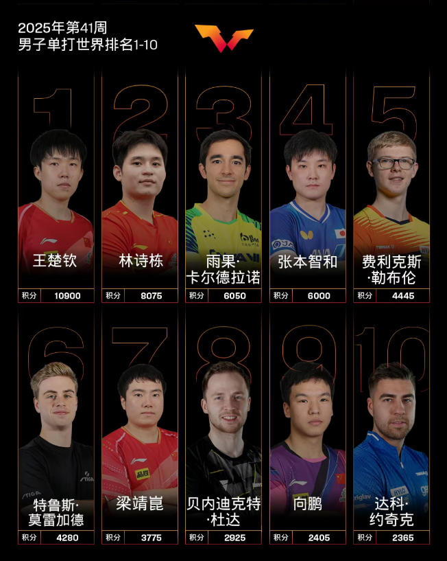 2025年10月最新乒乓球世界排名 王楚欽男單排名第一、孫穎莎、王曼昱女單排名第一和第二