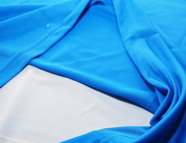 ? 由于氣候溫暖(當日氣溫約20度),很快出汗量就迎來了高峰。凱勝FAYJ001的透氣性與常見羽毛球服類似,沒有感受到更加突出的透氣性能。吸濕能力則非常不錯,身上的汗很快就轉移到了羽毛球服上;只不過速干性能依然與常見羽毛球服相同,不過不失。在高汗情況下,FAYJ001的前胸狀況明顯要比其他部位糟糕一些,由于吸了大量汗水,會有悶熱與不適的感覺,衣服的前胸內側是白色織物,難道是分了兩層(外層為藍色)織物,所以更加難以透氣?整體來說,FAYJ001沒有汗濕透后的粘滯裹體感,或許這額外的織布就是為了避免衣服粘在胸前。現在也是時候更換新衣了,脫下FAYJ001之后,身上的汗液并不多,看來其吸汗確實了得。