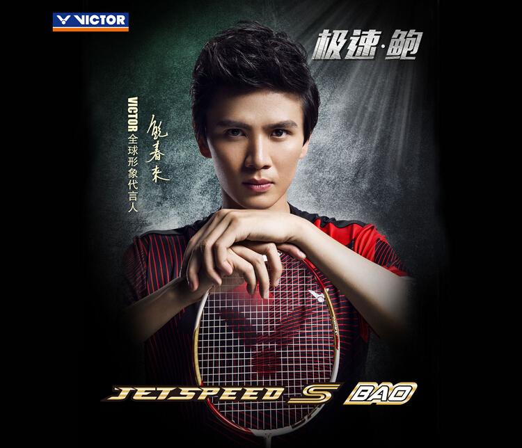 本次評測的主角:VICTOR勝利鮑春來極速傳說JetSpeedS-BAO,這是VICTOR簽約鮑春來為全球形象代言人后為其定制的一款專屬羽毛球球拍。在這之前,VICTOR也為趙劍華、李龍大、鄭在成等人制作過專屬的羽毛球拍,獲得了市場不錯的反響。新簽約的代言人鮑春來,相信廣大的羽毛球愛好者都再熟悉不過,如果林丹是中國羽毛球的“皇帝”,那么鮑春來稱之為“王子”也并不為過,其斯文優雅的外表,華麗細膩的球風都俘虜了不少粉絲,而除了羽毛球界外,鮑春來也曾經代言過多個時尚品牌,可謂是一名難得一見內外兼修的國羽男單球員。