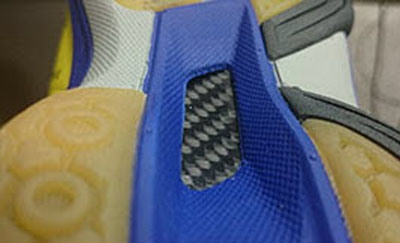 另外一定要介紹的是升級后的側向穩定系統(LS-S)。為減少在穿著者進行側向動作時,足部出現的不適感,設計師使用內軟外硬的兩個菱形射出片組成新的LS-S,同時也增加了菱形射出片的長度,提供更多橫向支撐的面積,有效分散側向移動時的沖擊力,也間接提升了穿著者動作的穩定性。