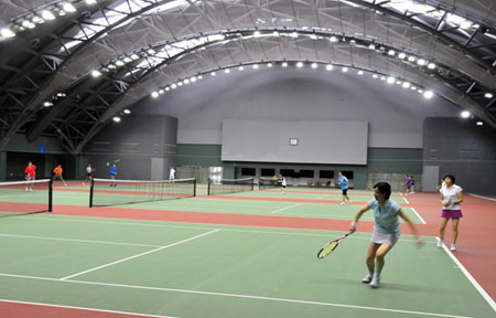 網球館共三個,其中有北京歷史上第一個室內網球館,面積共10100㎡,擁有12片室內標準場地,東區4片,西區8片,場地及