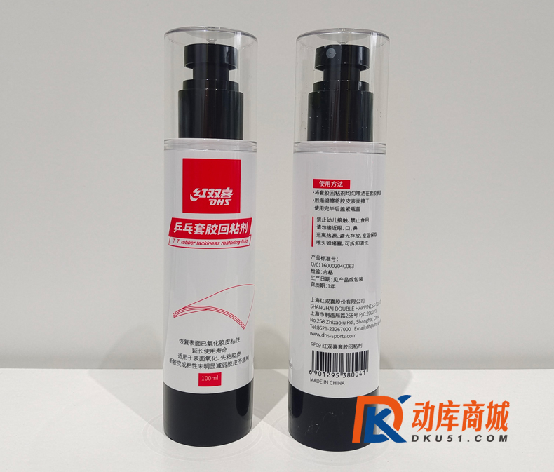 - 商品名稱:DHS紅雙喜回粘劑 粘性膠皮回粘劑 恢復(fù)粘性 粘性套膠回粘護(hù)理液 100ML/瓶