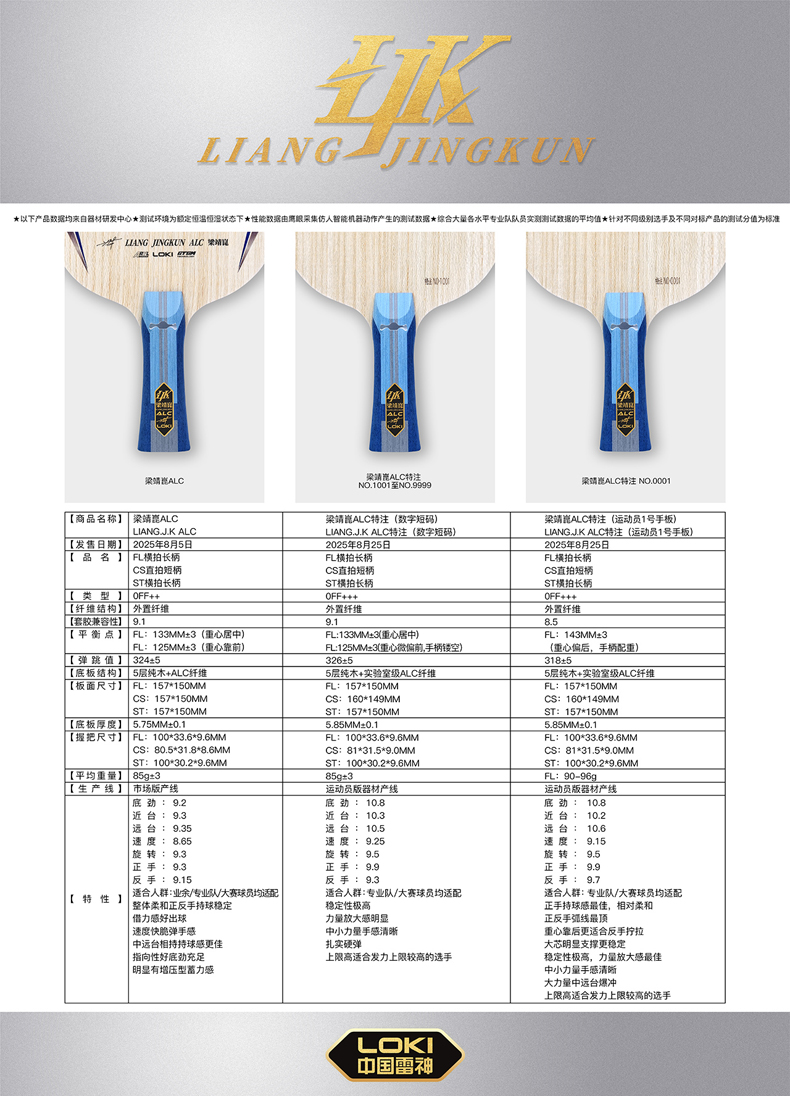 雷神梁靖崑ALC特注 外置纖維乒乓球底板 數字無字專業級比賽球拍