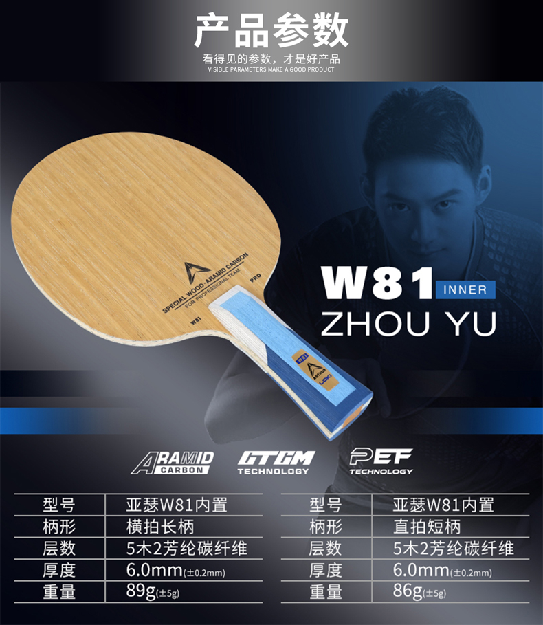 - 商品名稱:Loki雷神亞瑟W81內(nèi)置 5+2芳碳纖維乒乓球底板 持球性好 底勁充足